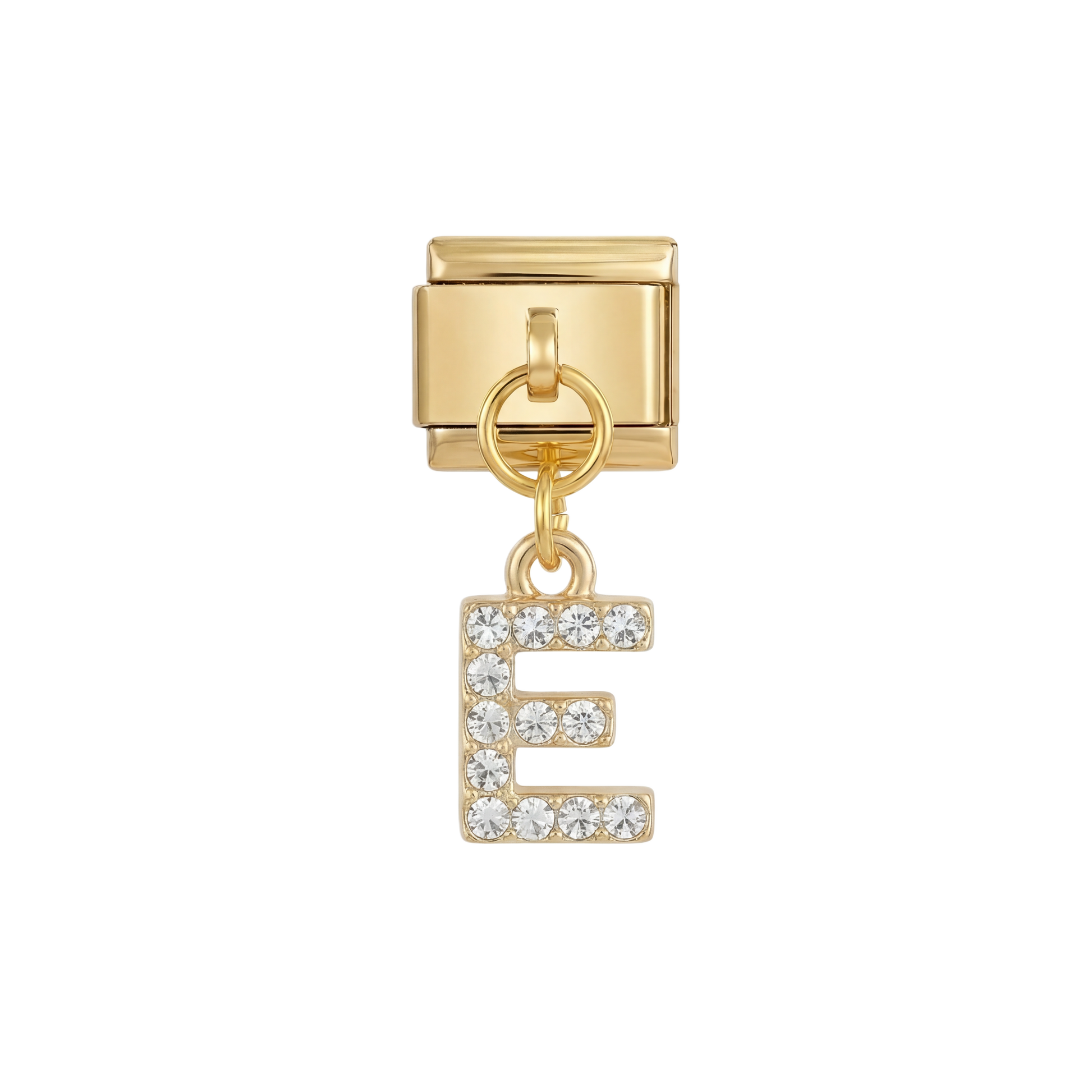 Letter E with stones, Hanging, on Gold